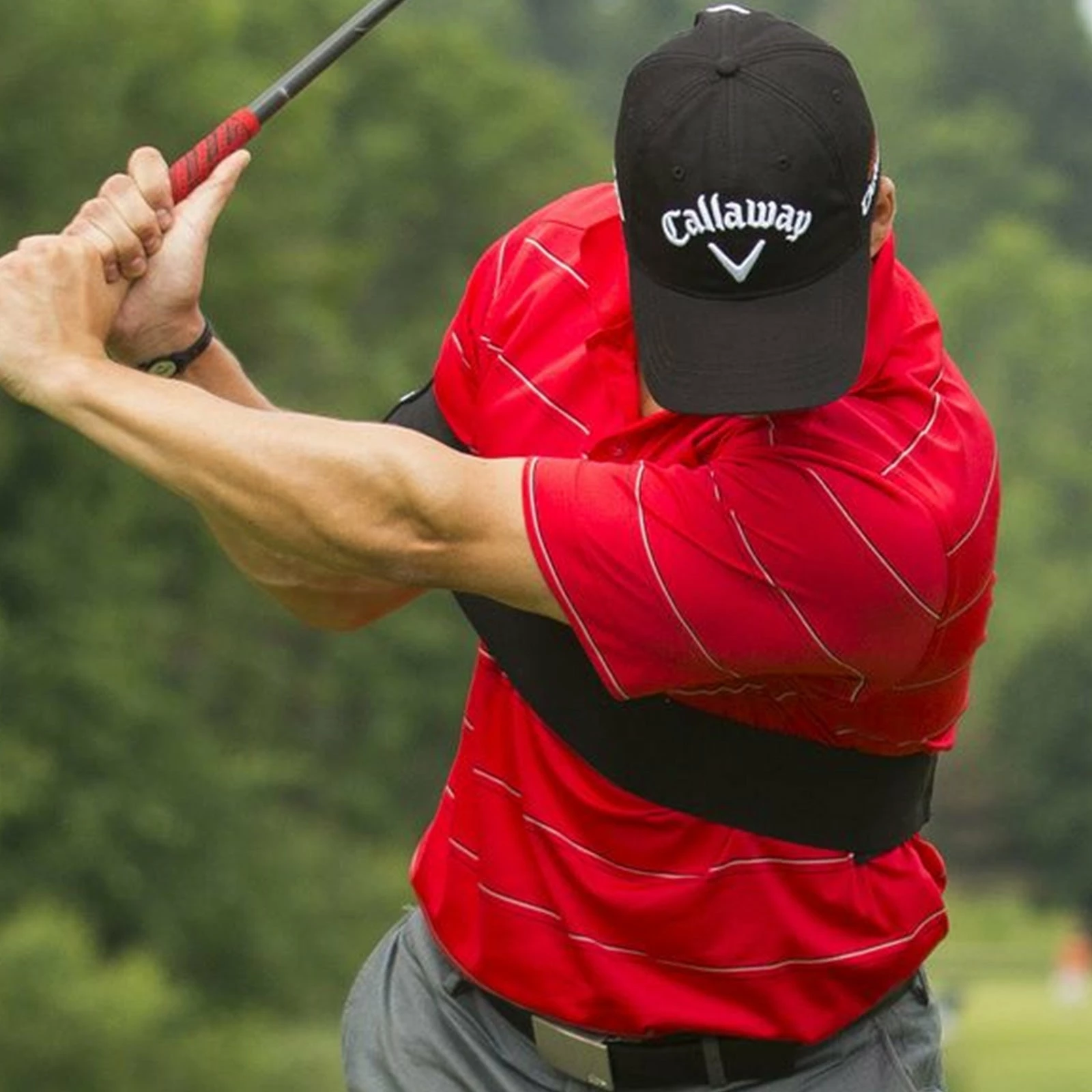 - Prevents “flying elbow” take-away fault which can lead to improper swing path and inconsistent ball striking.